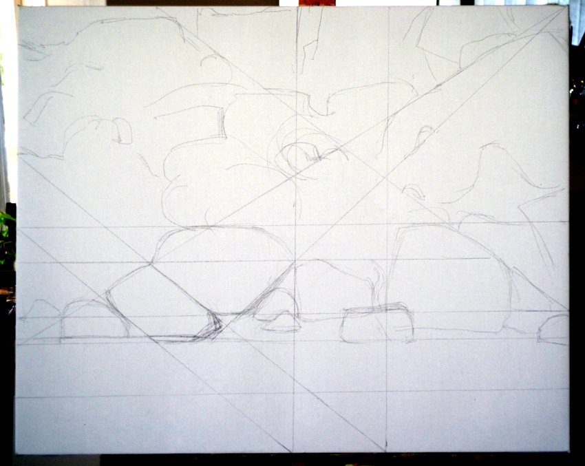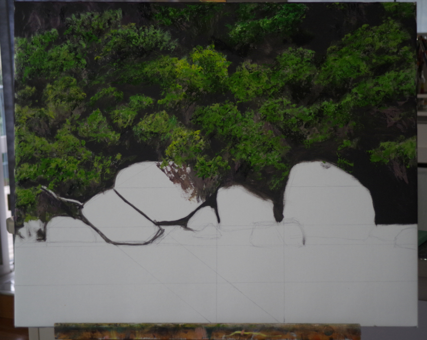 Painting Development Stages - Evening Rock Group